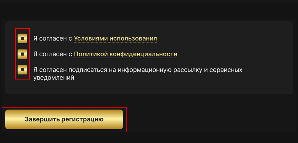 2.6 Внимательно ознакомьтесь с условиями соглашения работы на сайте, а так же с другими представленными документами, затем подтвердите регистрацию