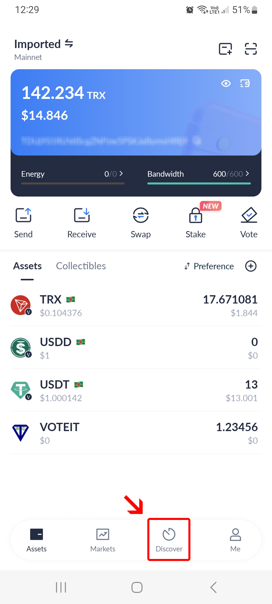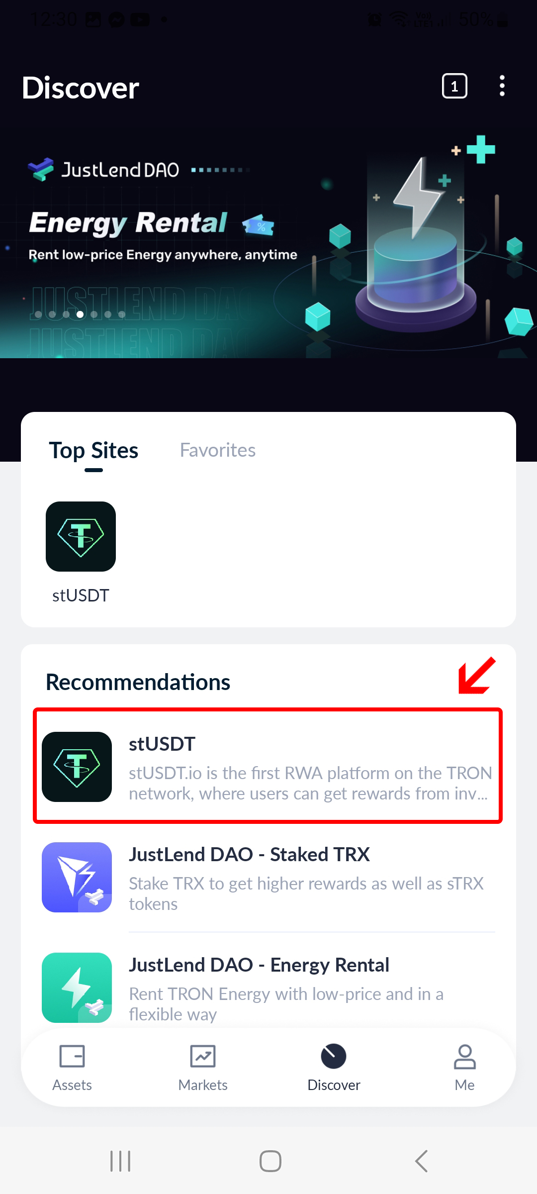 2.1 Откройте вкладку Dapp-Browser в мобильном приложении TronLink и введите ссылку на наш сайт www.realgold20.com.